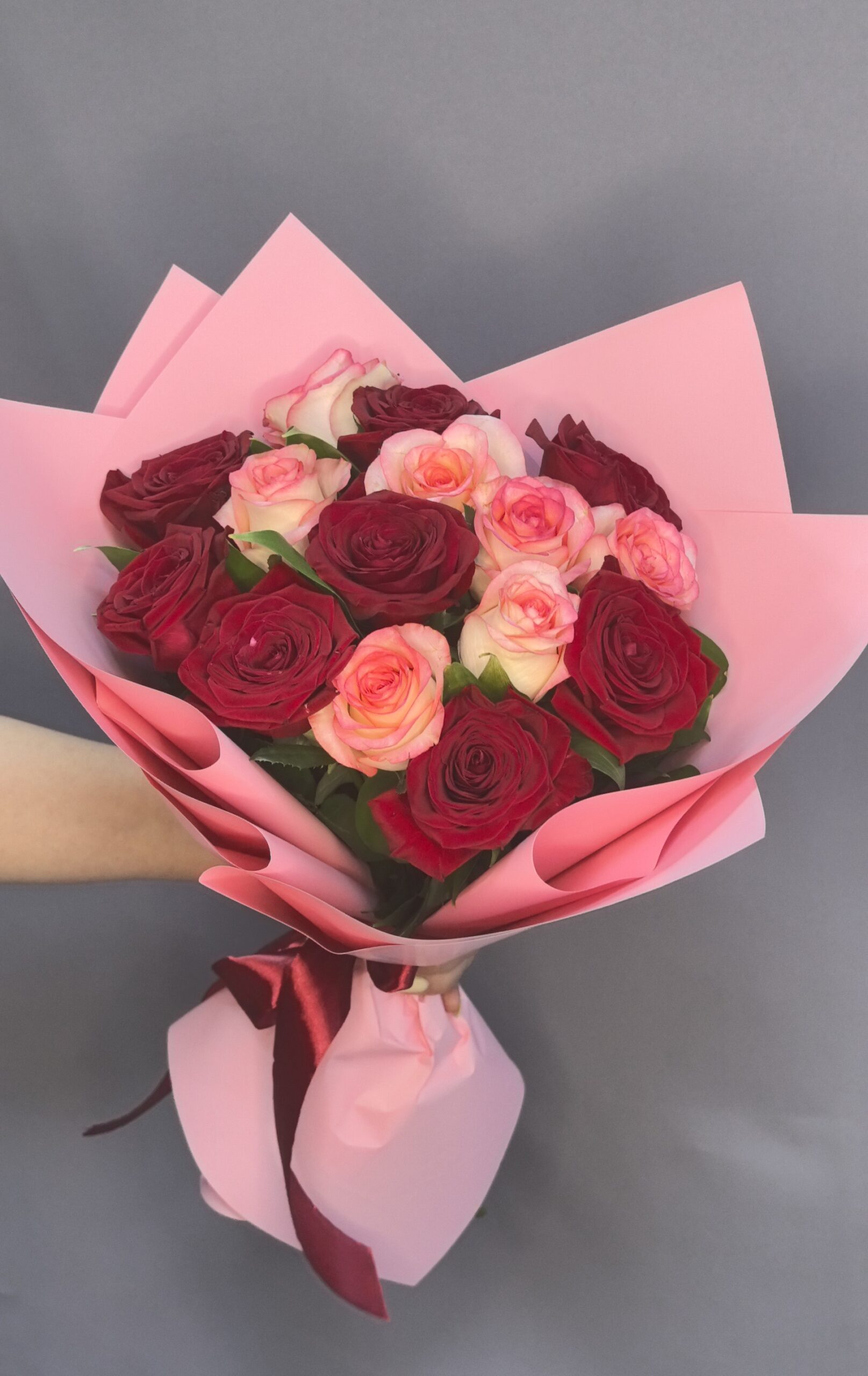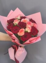 Букет, в котором переплетаются страсть красных роз и нежность розовых, создавая изысканную и чувственную композицию.