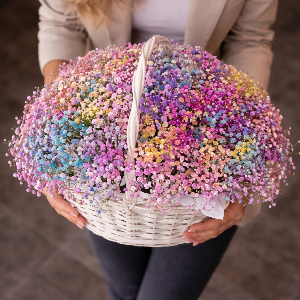 Корзина с радужными гипсофилами «Радужная мечта»