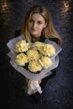 Цветы, которые заставляют сердце биться чаще. В центре композиции — премиальные французские розы с невероятным „раскрытым“ бутоном и ажурными, кружевными лепестками. Их мягкий кремово-лимонный оттенок напоминает первые лучи солнца. Этот букет не просто подарок, это признание в безупречном вкусе. Воздушная многослойная упаковка и длинные атласные ленты подчеркивают премиальный статус подарка, превращая его в настоящий арт-объект.
