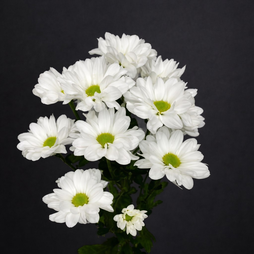 Хотите подарить частичку лета в любое время года? Кустовая белая хризантема — идеальный выбор. Её графичные лепестки и яркий контрастный центр выглядят очень стильно и современно, особенно в монобукетах или в сочетании с крафтовой упаковкой. Она привносит в интерьер свет и легкость, наполняя дом ощущением чистоты и уюта.
