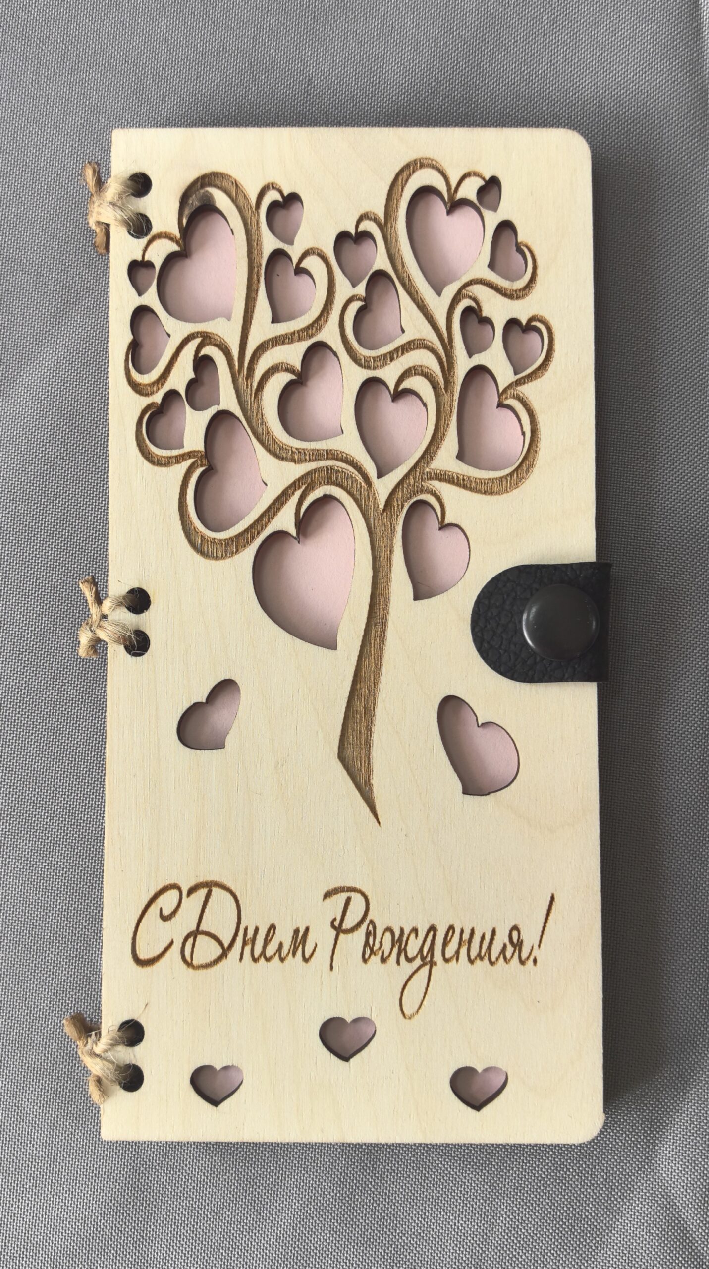Конверт деревянный с надписью «С ДНЕМ РОЖДЕНИЯ «